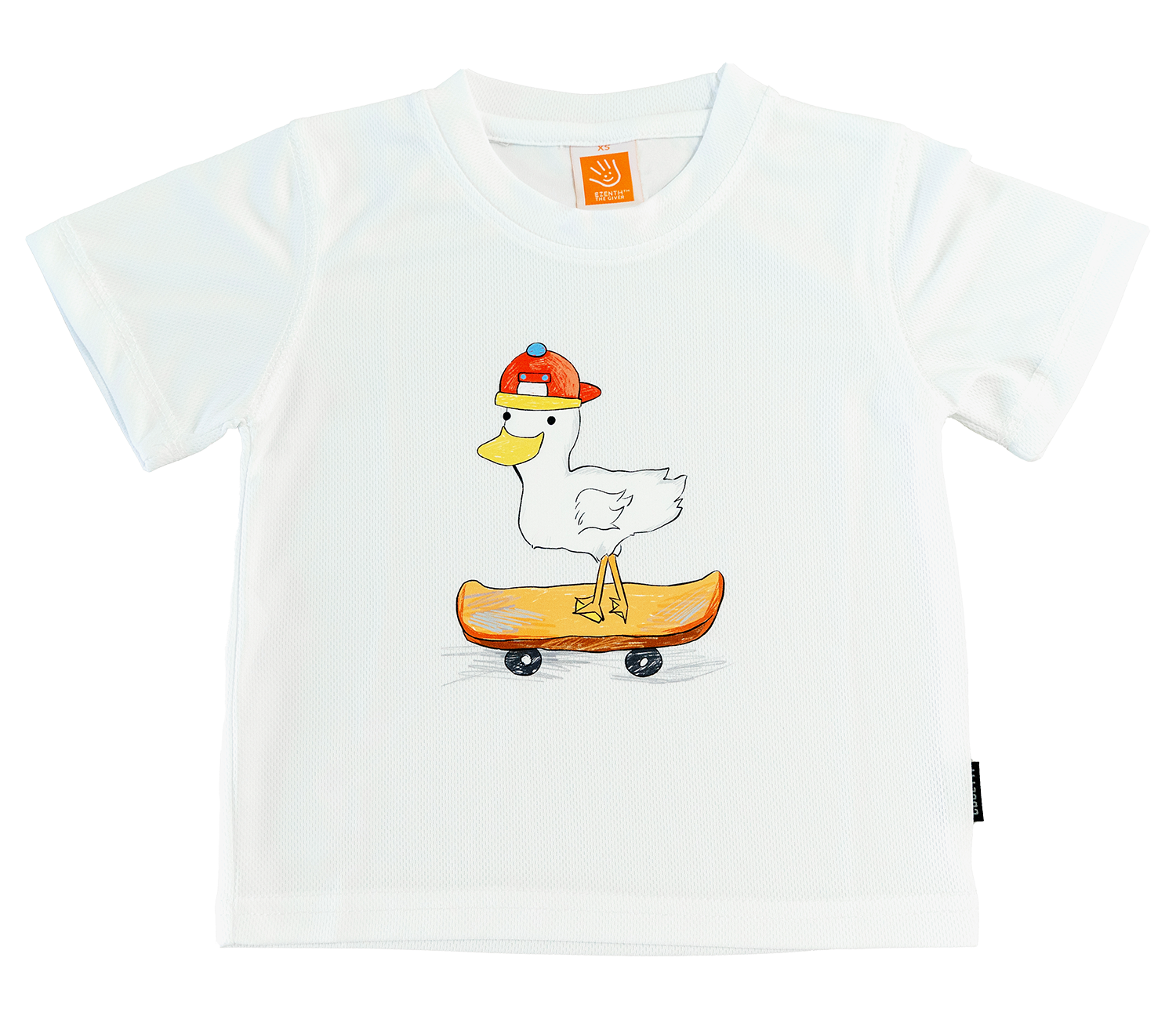 Meet Wong Kai Zhi, a talented 12-year-old artist whose inspiration for this artwork stems from his love for ducks, his very first favorite animal. In his imaginative creation, Wong Kai Zhi adorns the duck with a vibrant hat, infusing it with joy and liveliness. But that's not all – the duck is depicted effortlessly gliding on a skateboard, a playful nod to the importance of physical activity in childhood.